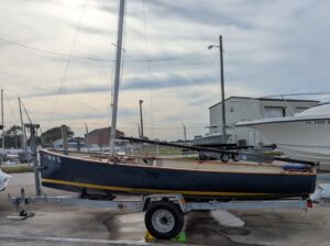 Great boat for the rig alone if you got a great hull. Price reduction for anyone getting into the class. 1969 D&M, Upgraded GMW Mast, Boom, and Centerboard, Galvanized trailer, Flat tailer, Mast-Up, and Bottom covers. One full set of North sails, One North smaller main for two handling, plus a couple of other miscellaneous sails. Up to date hardware and running rigging. Well cared for boat. Stored indoors except for the last year.