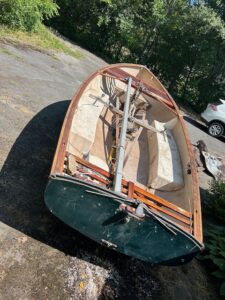 My mom bought her at a charity auction thinking it would lure the grand kids back to the lake. Not exactly the right boat for that and the grand kids were coming back to the lake anyhow. I rigged and sailed it a handful of times but am not an authority on this boat. It has been in storage for 4-5 years. It was campaigned by the late Walt Blackler here in the Finger Lakes. It's not a showpiece, more of a daily driver. It needs some work but is all there: Hull, centerboard, rudder, tiller, mast, boom, spinnaker pole...